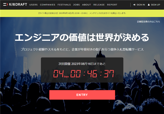 転職ドラフトとは、スカウト型の転職サイトで、企業がITエンジニアを年収付きで競争入札するサービスです。